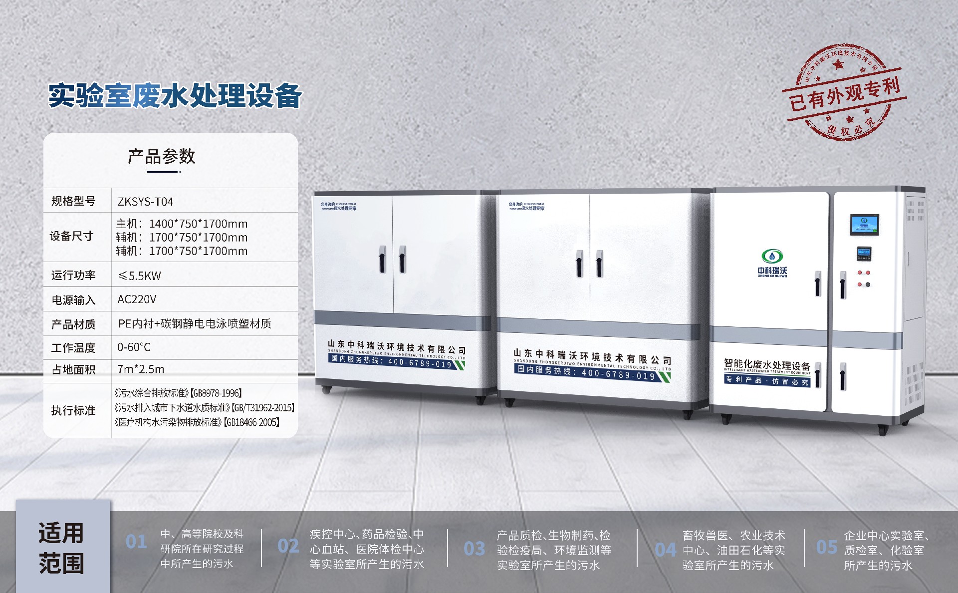 該設(shè)備被廣泛應用于中、高院校、科研院所、醫(yī)療機構(gòu)、生物制藥、疾控中心、環(huán)監(jiān)、產(chǎn)品質(zhì)檢、檢疫檢驗、藥品檢驗、血站、畜牧、醫(yī)院、石油化工、企業(yè)等實驗室、化驗室的綜合廢水處理,憑借穩(wěn)定性能,優(yōu)質(zhì)處理結(jié)果,受到廣大客戶的一直好評。